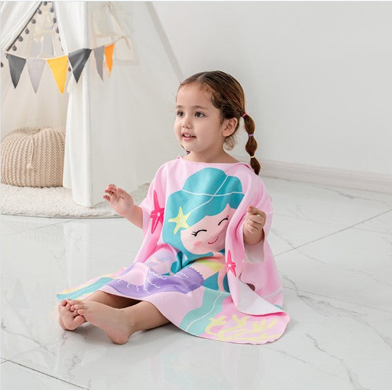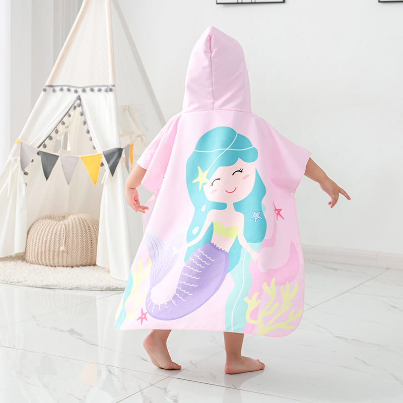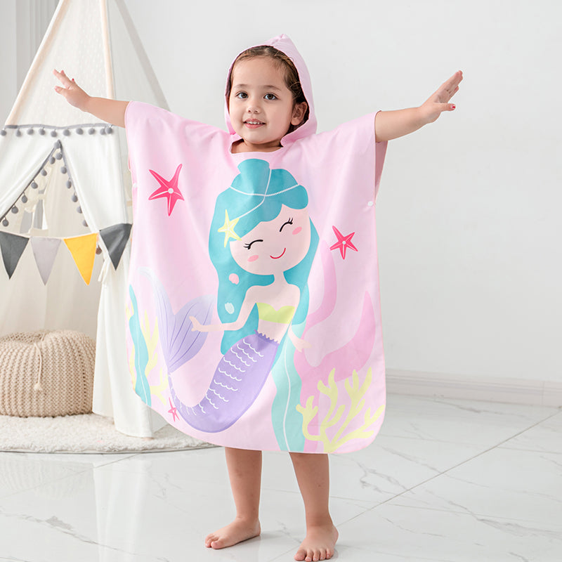 可愛美人魚兒童浴巾,連帽設計,沙灘戲水必備!