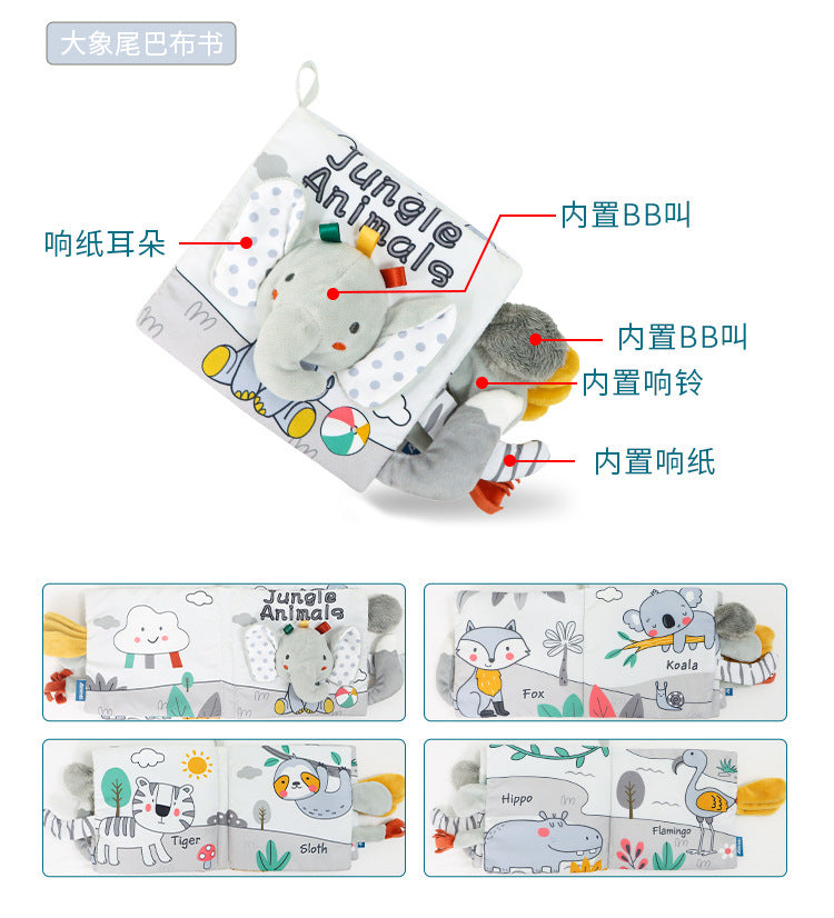 BB早教布書~多功能黑白尾巴書-BB象[6-36M]