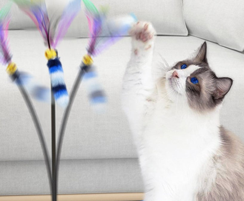 色彩羽毛逗貓棒,輕巧靈活,提升貓咪互動樂趣