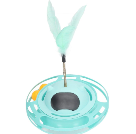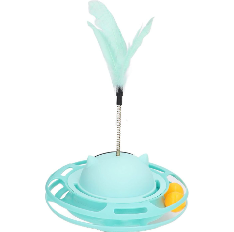 小貓轉盤玩具,貓玩具解悶,360 度旋轉,有有趣的羽毛,寵物用品(藍色)