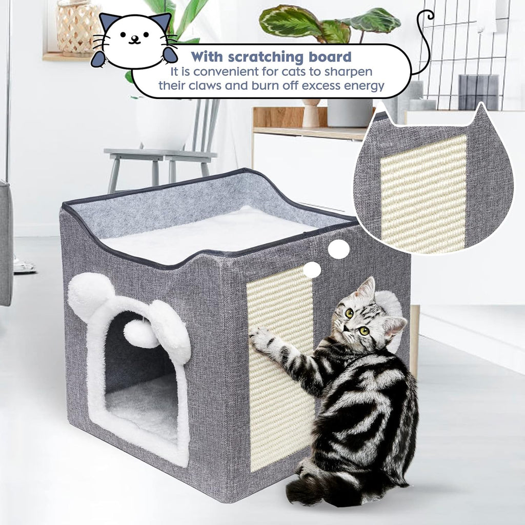 - 【易於組裝】這款用於室內貓的貓立方體可以快速組裝或摺疊平整,便於存放和旅行。便攜輕便。可拆卸靠墊配有可機洗的雙面罩,提供四季舒適感。