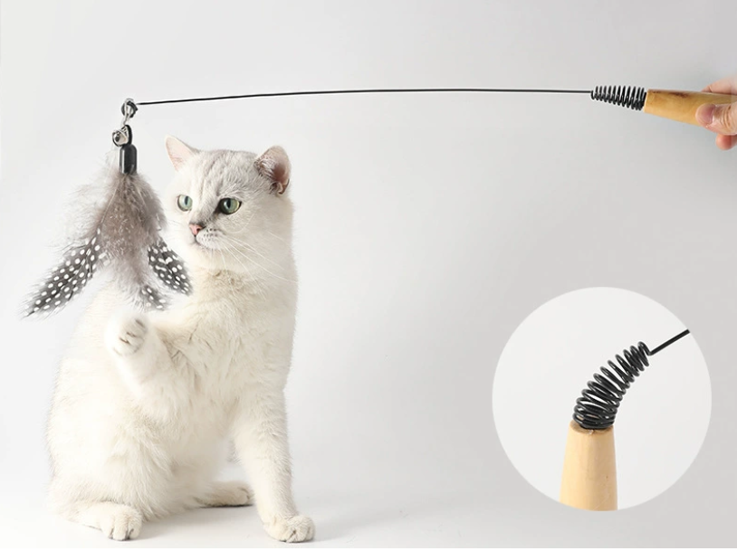 AMP503 木柄彈簧逗貓棒 羽毛鈴鐺替換頭 互動貓咪玩具