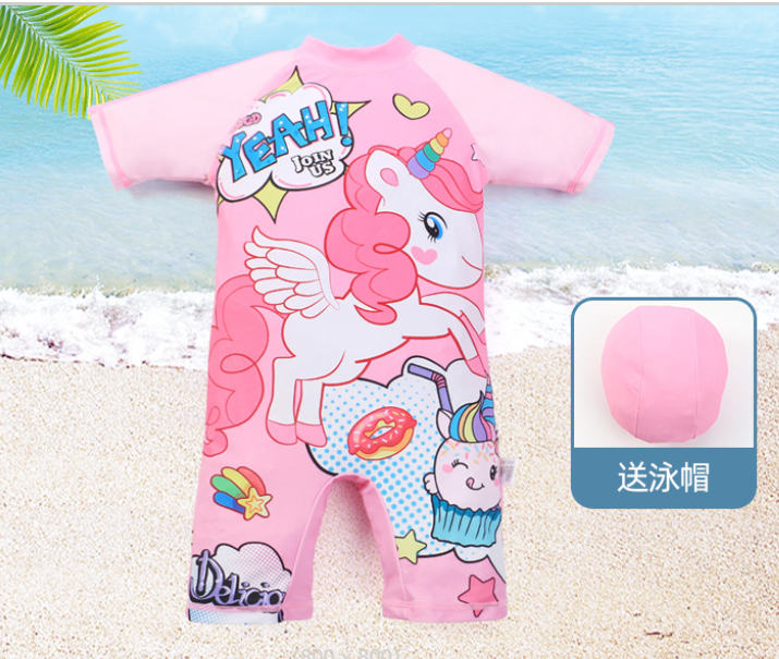 AMSW008P 粉紅獨角獸連身泳衣(附送泳帽) 80-130
