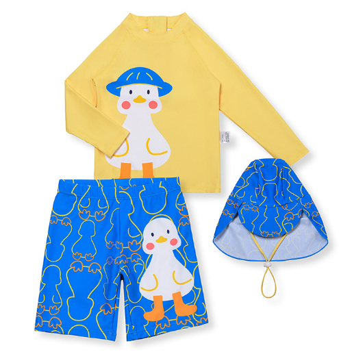 AMSW010Y 可愛鴨鴨長袖分體防曬泳衣(送泳帽) 100-120