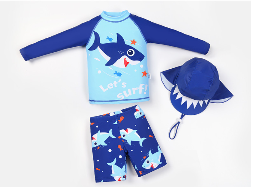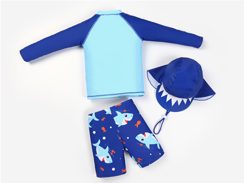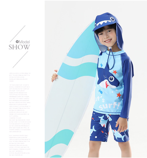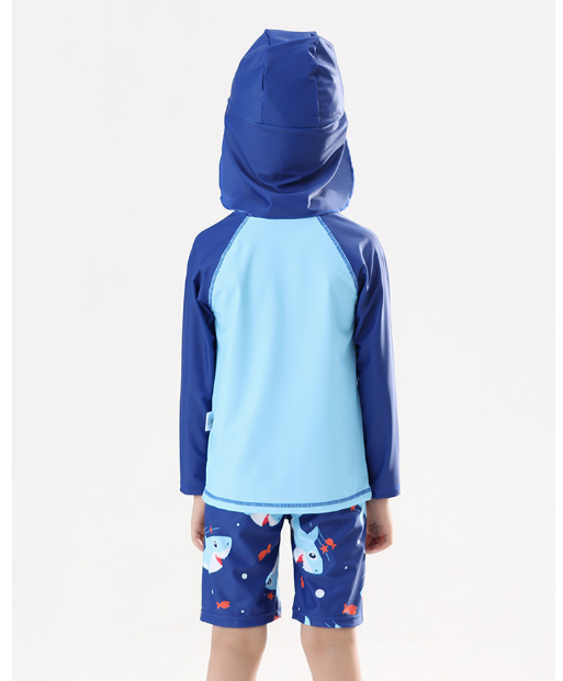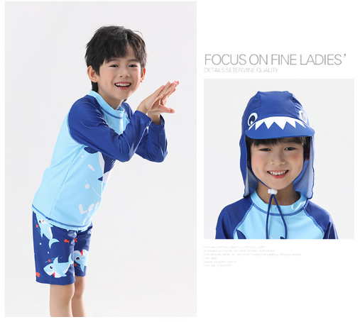 AMSW011B 開心鯊魚長袖分體防曬泳衣(送泳帽)  100-120