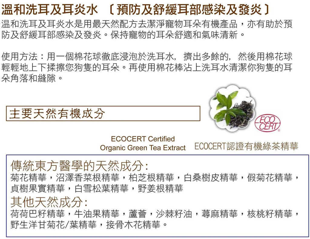 溫和洗耳及耳炎水是用最天然配方去潔淨寵物耳朵有機產品,
