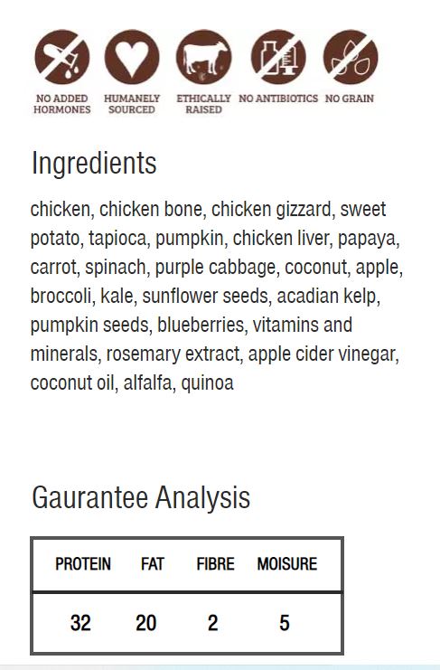 - 生肉,雞肉無添加激素,無抗生素,無穀物,無麩質