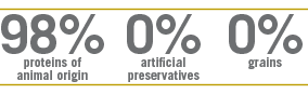 - 雞肉為使用非基因改造飼料飼養的意大利的放牧野雞。並且完整使用新鮮肉塊,絕不使用低品質食材(如羽毛、喙、骨頭等)。新鮮的放牧野雞肉塊可以擁有高度生體利用率及高達95%的消化吸收率。