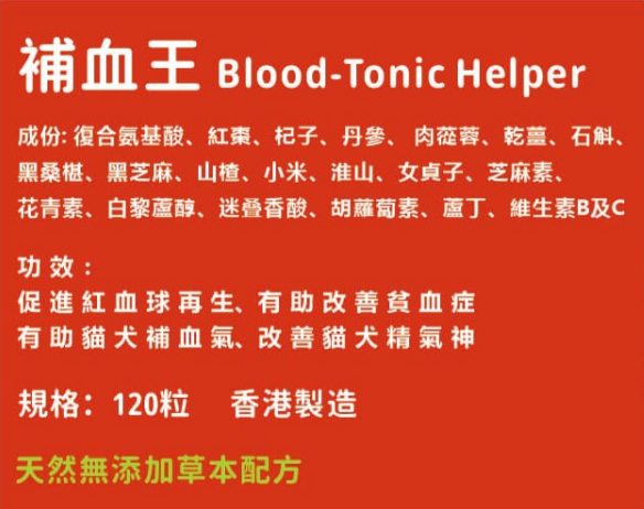 有助貓犬補血氣、改善貓犬精氣神