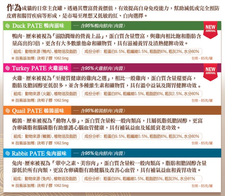 ➤ 單一蛋白 95%鮮肉肉醬
