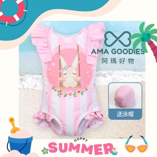 AMSW001P 粉紅兔兔連身泳衣(附送泳帽) 90-140 | 小公主必愛